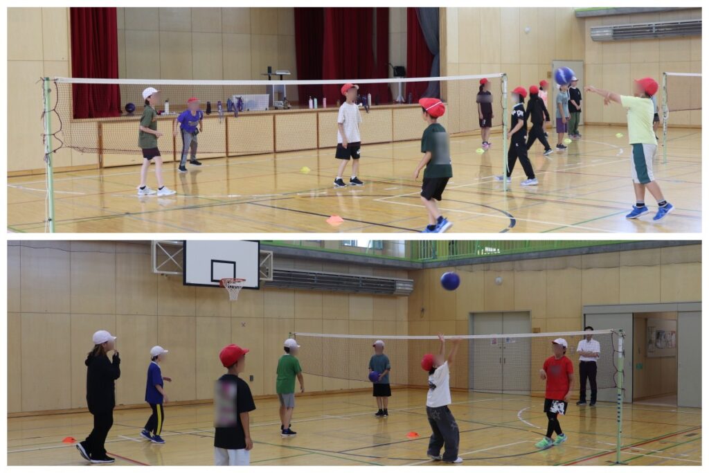 第1回目は、志文小学校5年生に対し、北海道教育大学岩見沢校の先生をお招きし、「バレーボール」の内容で行われました。