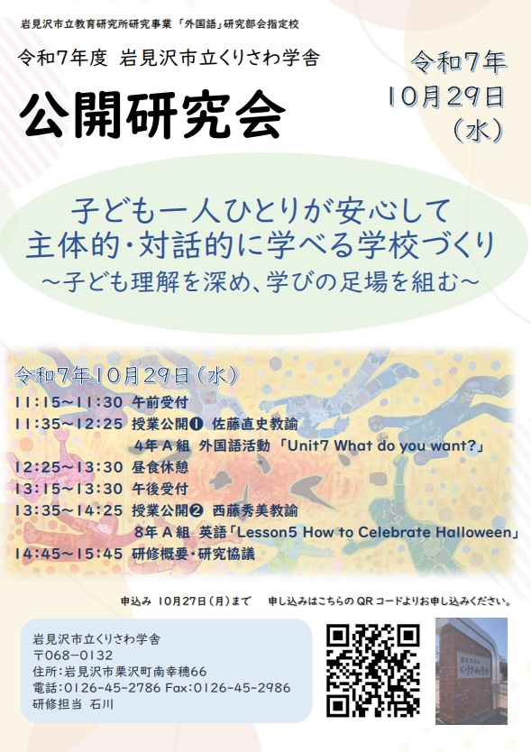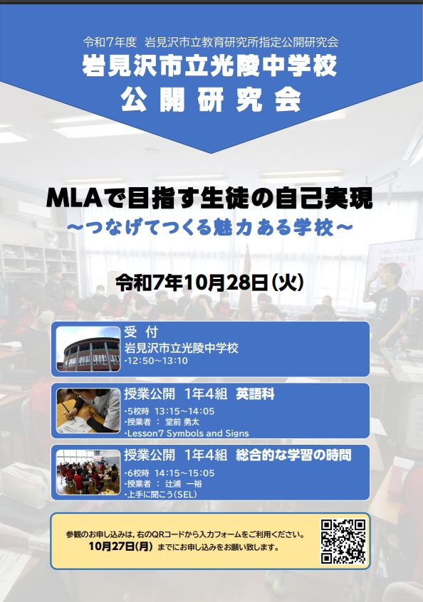 光陵中学校の1学年英語の授業が公開されました。この授業は当研究所の教科等研究部会の研究指定を受けて行ったものです。