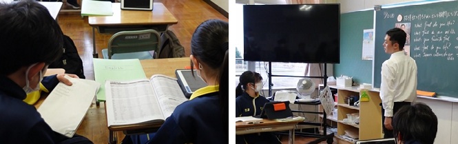 まとめでは、先生からWhatとWhichの使い方について確認し、学習内容の定着を図りました。今回の授業では、生徒にデジタルの活用を通して、興味・関心を高めながら必然性のある言語活動の幅を広げていました。